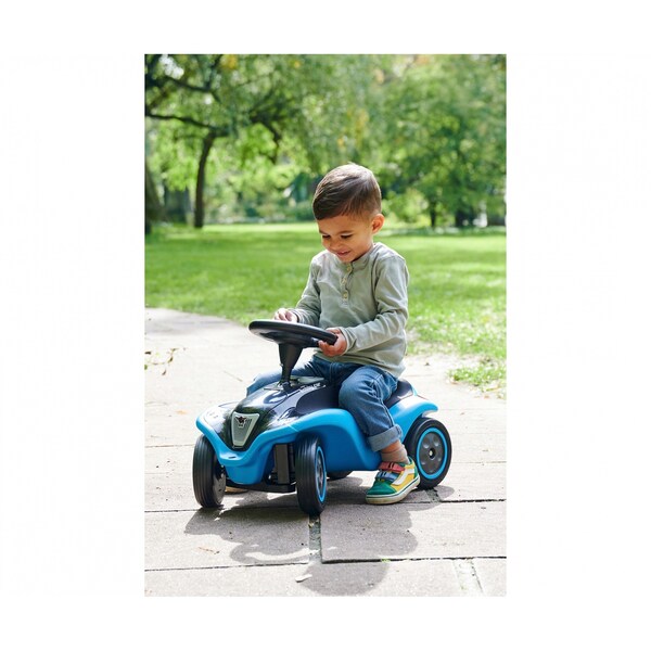 Schon optisch überzeugt der hochwertige Rutscher durch seine moderne Farbgebung und unterschiedliche, haptische Oberflächen. Die Stromlinienform des BIG-New-Bobby-Car wurde ebenso beibehalten, wie die bewährte Kniemulde, die auch älteren Kindern bequemes Fahren ermöglicht.