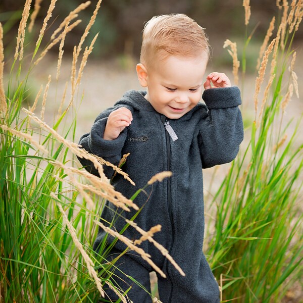 Der weiche Fleece-Overall hält warm und macht jede Bewegung mit. Besonders für die Babytrage geeignet, denn der extralange Schnitt sorgt dafür, dass die Haut an den Beinen bedeckt bleibt und sich der Stoff nicht hochzieht. Wenn Dein Kind selbstständig läuft, können der Beinsaum und die Ärmel einfach hochkrempeln werden. Die Flatlock-Nähte sehen auch nach außen gekrempelt großartig aus.