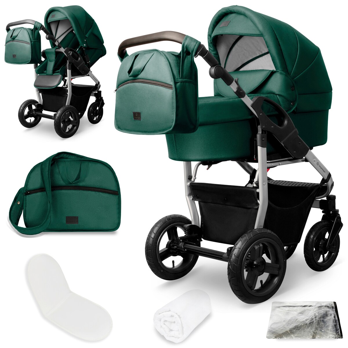 Bergsteiger Capri, ein wandlungsfähiges Allroundtalent! Das Haus Bergsteiger bietet Ihnen mit dem Kinderwagen Capri ein umfangreiches Kinderwagen-Set in acht verschiedenen attraktiven Designs an, das in Bezug auf Sicherheit, Komfort und Ausstattung keinerlei Wünsche offen lässt. Vom ersten Tag an bis weit in die Kindergartenzeit hinein wird das Kinderwagen-Set Capri Ihren Nachwuchs adäquat begleiten. Der Kinderwagen selbst ist federleicht, aus Wasser abweisenden Materialien hergestellt und bietet durch die unkomplizierte Höheneinstellung sowie die wendigen Schwenkräder einen hohen Komfort beim Fahren. Durch den klappbaren Schirm ist Ihr Kind bei Spaziergängen zugleich vor Sonne und Regen geschützt. Der abnehmbare Sicherheitsbügel sowie ein 5-Punkt-Sicherheitsgurt schützt Ihr Kind optimal vor dem Herausfallen. Die zentrale Fußbremse und die Rahmenfederung sorgen auch fernab von Straßen und Gehwegen für Sicherheit und Laufruhe. Natürlich entspricht der Kinderwagen Capri von Bergsteiger der Sicherheitsnorm EN1888 und passt im zusammengeklappten Zustand in alle handelsüblichen Pkws. Zu dem Bergsteiger Capri gehört ein umfangreiches Zubehör-Paket, sodass Sie immer gut ausgerüstet sind und alle Komponenten auch optisch perfekt zueinanderpassen. Mit dem Set erhalten Sie das Kinderwagengestell Bergsteiger Capri mit höhenverstellbarem Griff, eine Babywanne mit abnehmbarem Innenfutter sowie einen Buggy-Aufsatz, damit Sie den Liegewagen im Handumdrehen zu einem Sportwagen mit Fußsack umbauen können. Zusätzlich gehören eine komfortable mit Wetterfußsack und Sonnenschutz für das Auto sowie eine praktische Wickeltasche, ein Moskitonetz, ein Regenschutz und ein Einkaufskorb zu diesem tollen Kinderwagen-Set. Die verschiedenen Aufsätze des Bergsteiger Capri haben Sie dank des unkomplizierten Fixierungssystems in Sekundenschnelle gewechselt, sodass Sie und Ihr Nachwuchs immer flexibel bleiben.