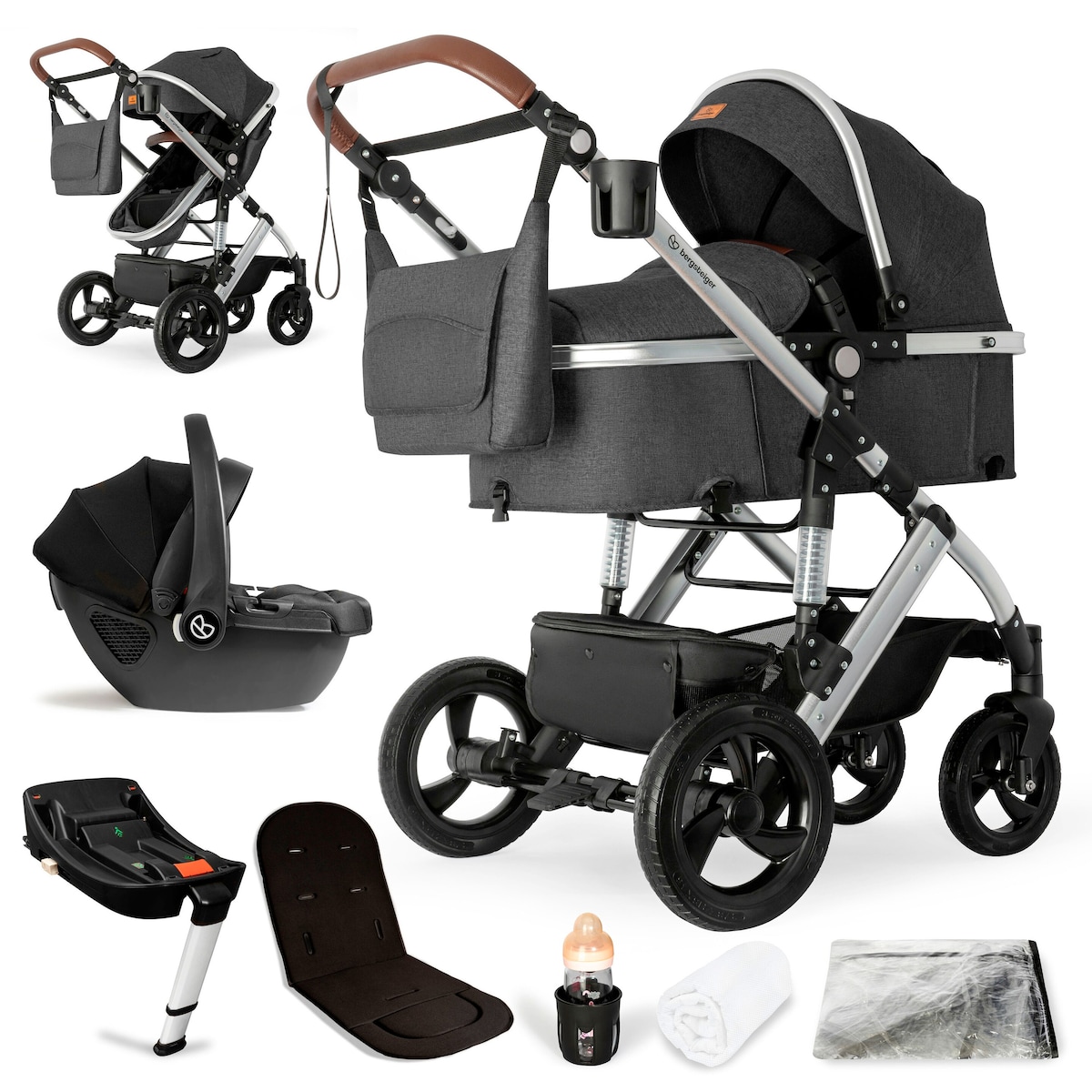 Kinderwagen Nizza + Babyschale + Isofix-Station grey | Gestell: silver