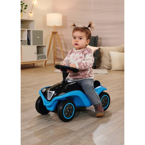 Das BIG-Bobby-Car NEXT erfüllt die Anforderungen des Rennnachwuchses ab 12 Monaten und verfügt serienmäßig über Doppelscheinwerfer mit LED-Lichtsignatur, einen weichen Schaumsitz und eine elektronische Hupe.