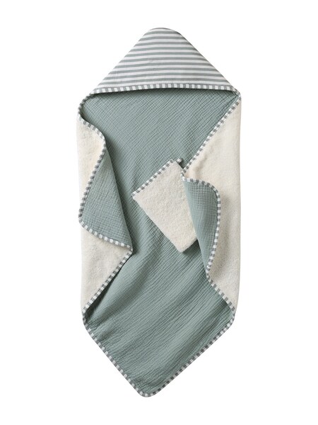 Bio-Kollektion: Baby Geschenkset aus Wende-Badecape & Waschhandschuh salbeigrün