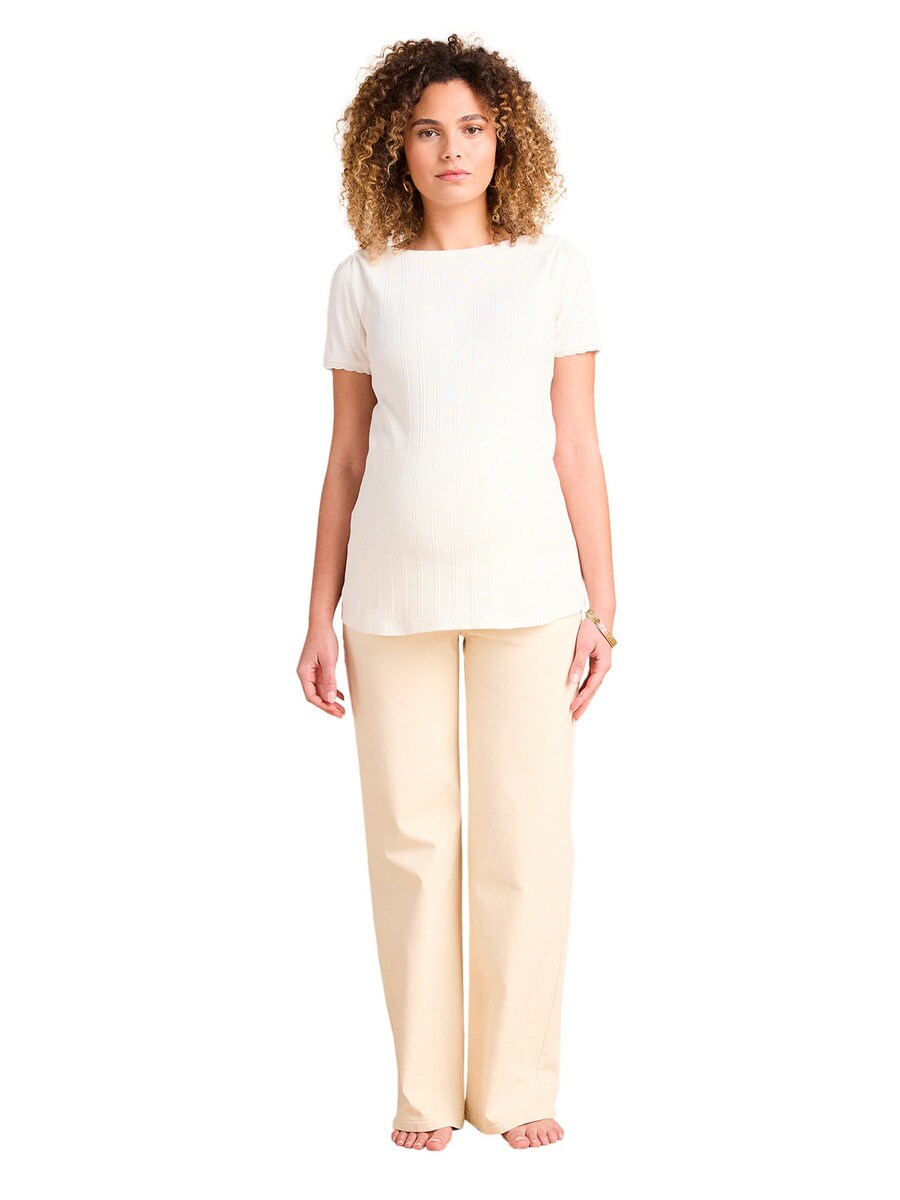 Der breite, nahtlose Stretch-Einsatz am Bund umschließt den Babybauch sanft, ohne ihn einzuengen