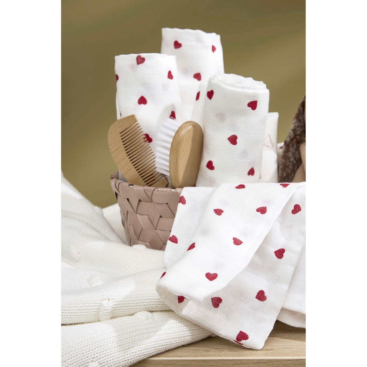 9-tlg. Starterset mit Mullwindeln, Spucktücher und Waschlappen Herzen