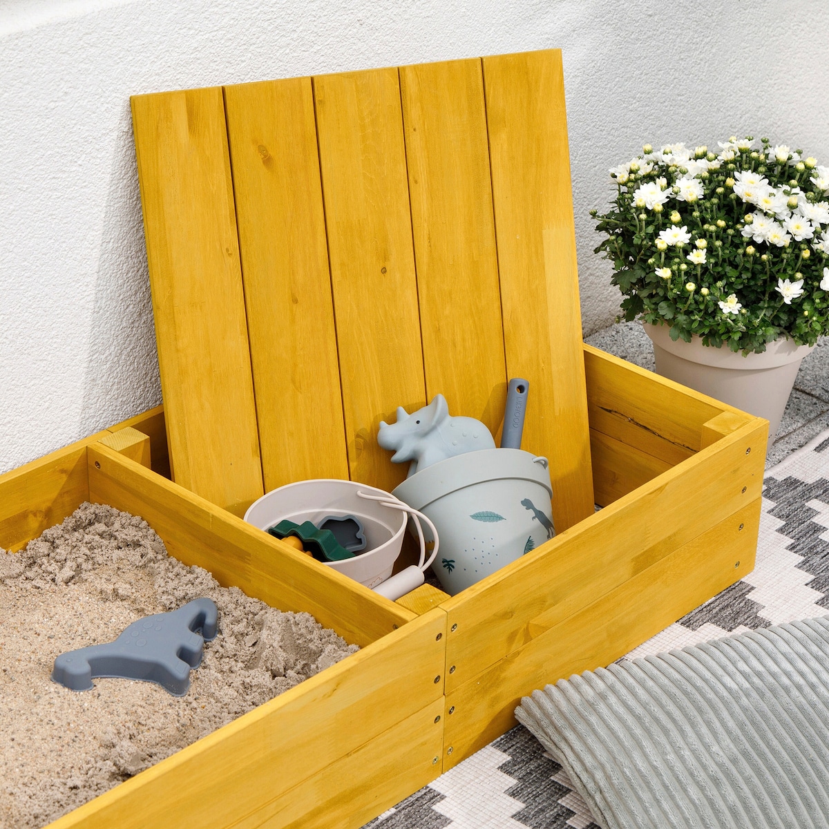 Die aus massivem Zypressenholz gefertigten Elemente sind in modernen Farben gehalten und mit Holzschutz vorbehandelt. Der Buddelkasten wird inklusive inklusive Sandkastenvlies geliefert. Die Sandkiste ist auch ideal für die Terrasse oder den Balkon geeignet. Kids ab drei Jahren werden begeistert sein, darin zu spielen.