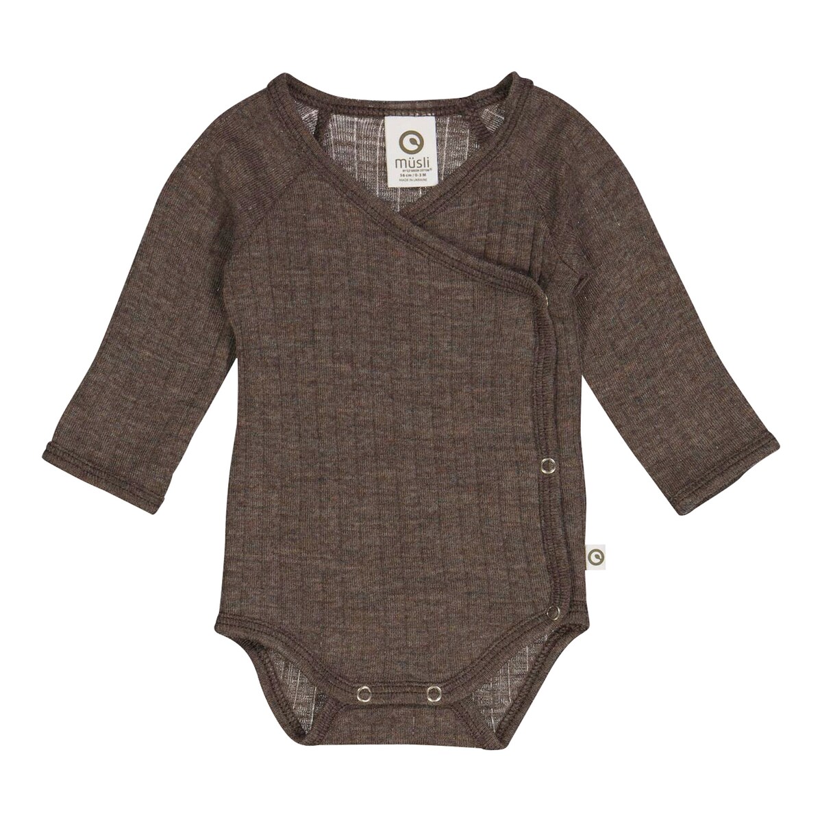 Woll-Wickelbody langarm Rippqualität Merinowolle braun melange