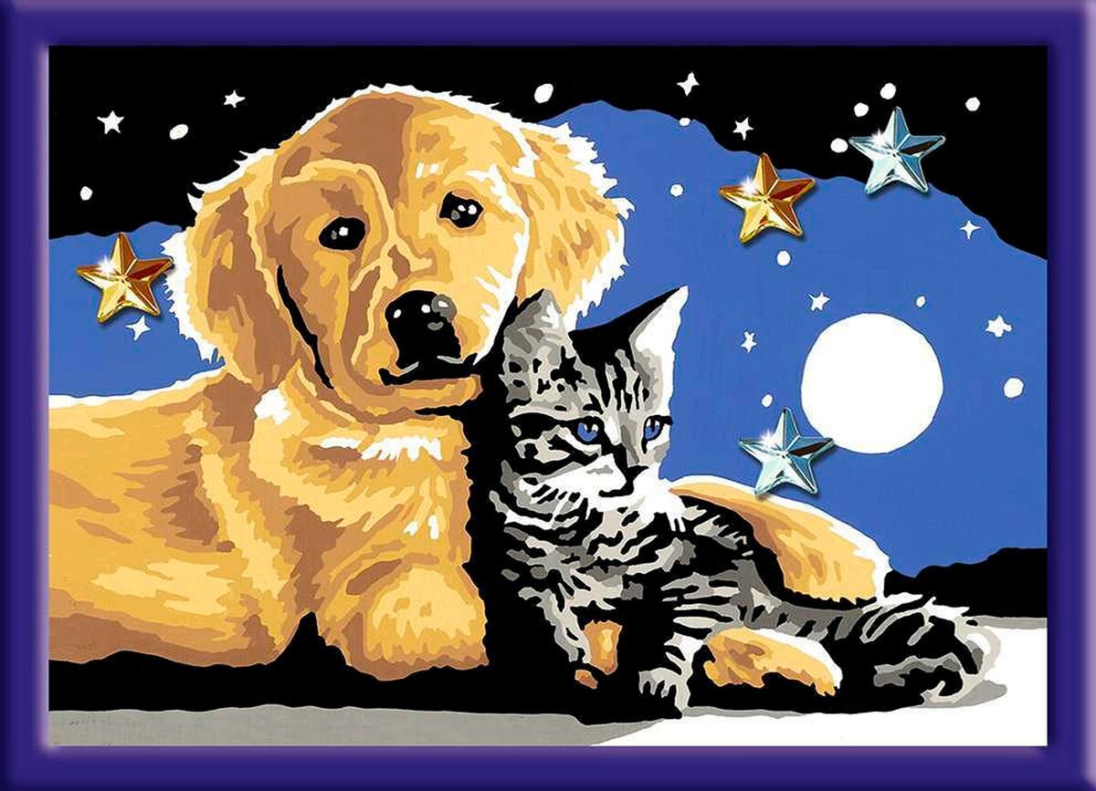 Jedes Malset enthält alles, was Künstler zum Malen brauchen und es ist kein Mischen der Farben notwendig. Zusätzlich zur Maltafel, zu den Farben und zum Pinsel, sind in diesem Malset funkelnde Glitzer Steine enthalten. Mit ihnen wird das fertig gemalte Bild verziert und zum Strahlen gebracht.