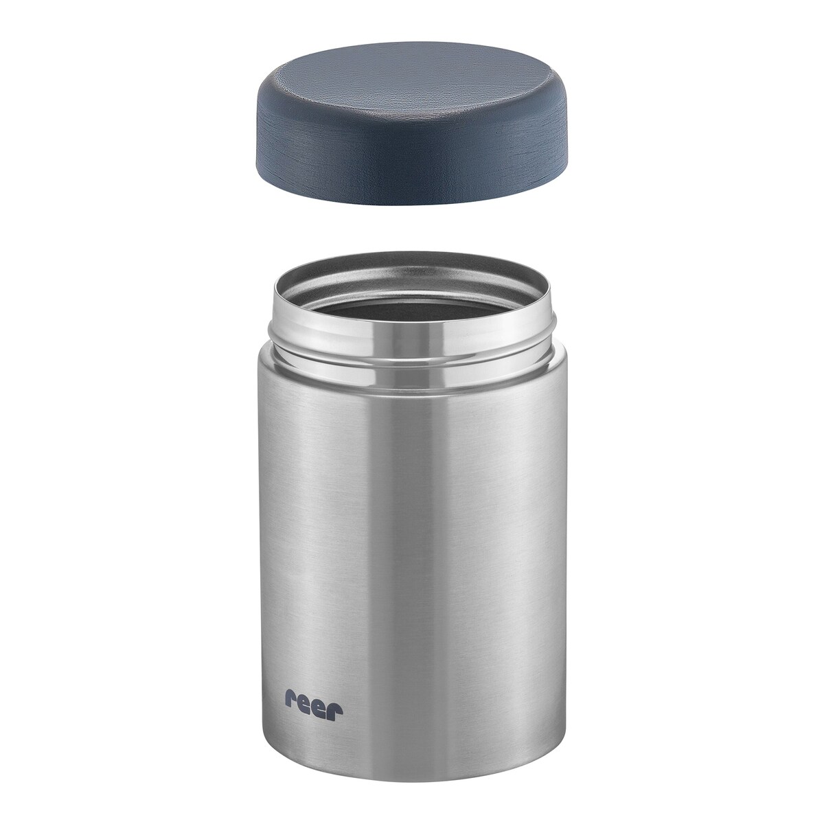 Ideal für zuhause und unterwegs: Ob kleiner Snack oder ganze Mahlzeit – mit der Edelstahl-Warmhaltebox von Reer hast Du das Essen für Dein Kind immer griffbereit.