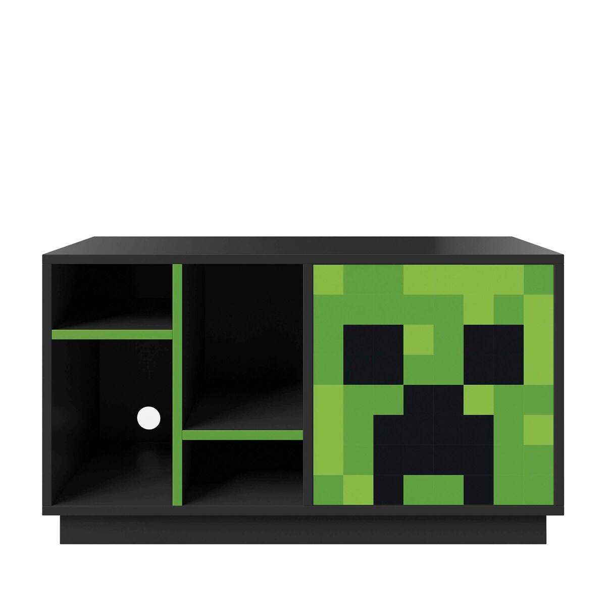 TV-Lowboard mit Tuer mit Push-Open und 4 offenen Fächern, Kabeldurchführung MINECRAFT