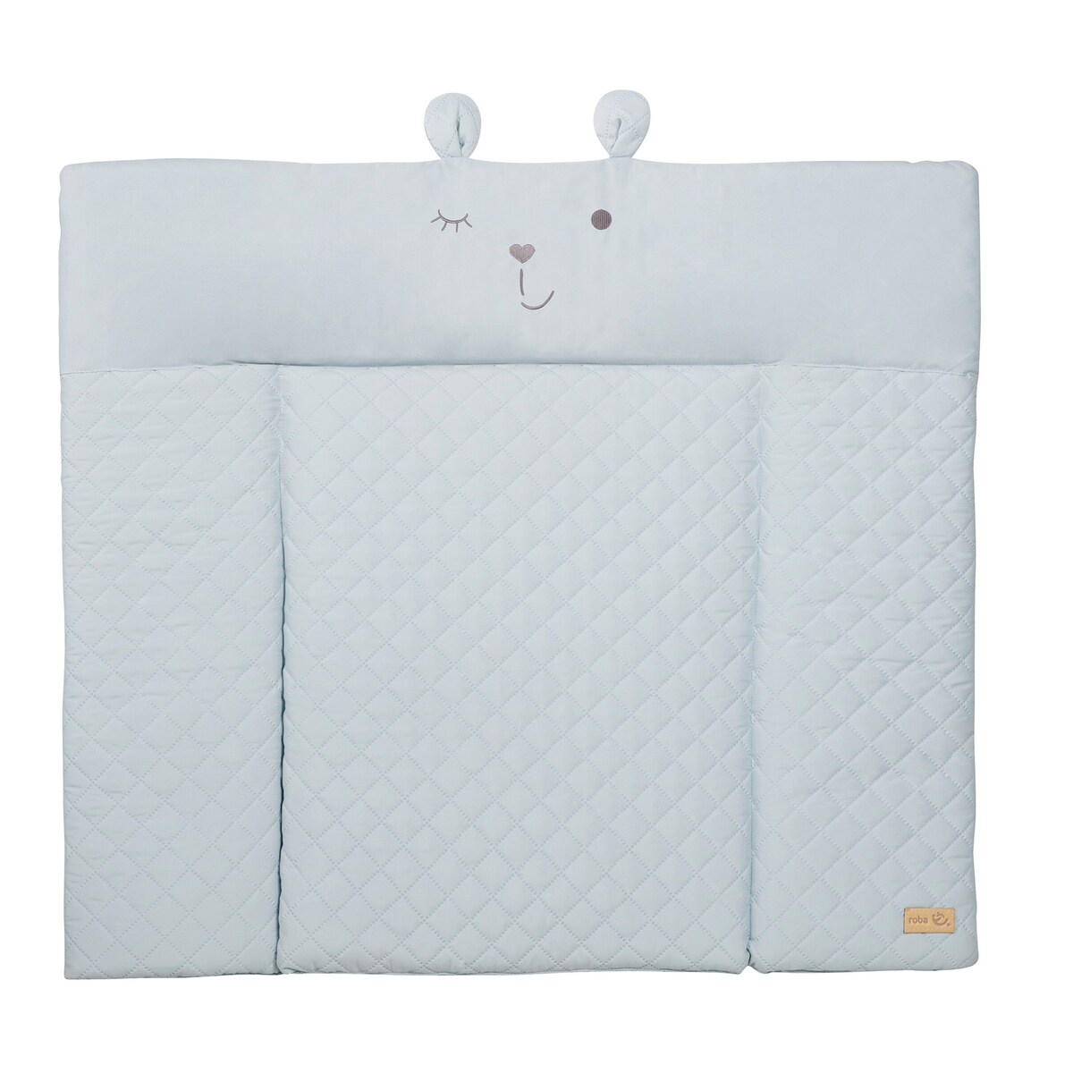 Die roba Wickelauflage soft im modernen 'roba Style' Design mit ihrem niedlichen Bärengesicht 'Benny' und zwei Hasenohren als Hingucker sorgt mit ihrem 3-seitig erhöhten Rand für mehr Sicherheit und Geborgenheit beim Wickeln und Pflegen. Die Wickelunterlage ist weich gepolstert, damit Ihr Baby bequem liegt. Der Oberflächenstoff der Wickeltischauflage mit wasser- und schmutzabweisend beschichteter Oberseite ist besonders hautfreundlich und anschmiegsam. Die hochwertige, moderne „roba style“ Serie bietet Produkte für Babys, die mit Textilien aus pflegeleichter, gesteppter Mikrofaser ausgestattet sind. „roba style“ Produkte überzeugen durch ihre trendige Optik, die sich in jedes Wohn- und Babyzimmer integriert und ihre angenehm weiche Haptik. Entdecken Sie praktische Baby-Artikel aus der „roba style“ Serie wie z.B.: Babylounges, Laufgittereinlagen, Treppenhochstühle, Baby Pools und vieles mehr. Alle verwendeten Materialien der phthalatfreien Wickeltischauflage sind schadstoffgeprüft, zertifiziert und werden regelmäßig geprüft. Die Oberfläche der Wickeltischauflage ist abwischbar und pflegeleicht. Die Maße der roba Wickelauflage 85 x 75 cm sind an die meisten "Standardwickelkommoden" angepasst. Füllung: 100% Polyester, Farbe: Oberseite Hellblau, Rückseite: Weiß, Design 'Benny', Kollektion: roba Style.