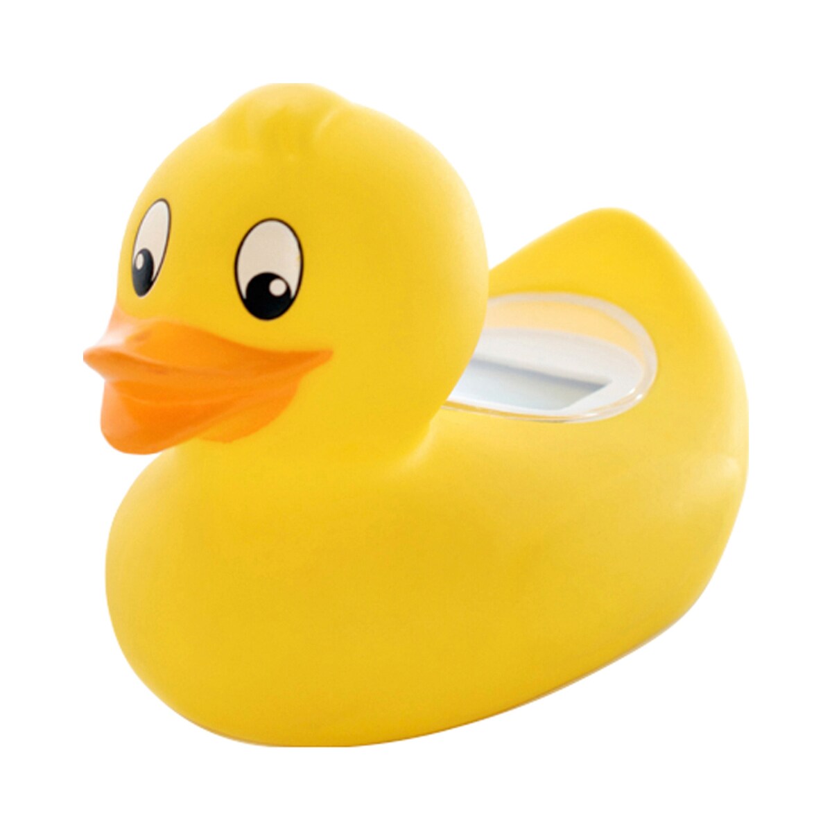 Mit weichem, elastischem Material und einer handlichen Form passt diese Bade-Ente perfekt in kleine Kinderhände. Auf ihrem Rücken trägt sie eine gut sichtbare LCD-Anzeige. Dort lesen Eltern schnell die Wassertemperatur ab oder überprüfen vor dem Baden kurz die Raumtemperatur, damit es die Kleinen auch außerhalb der Wanne angenehm warm haben.