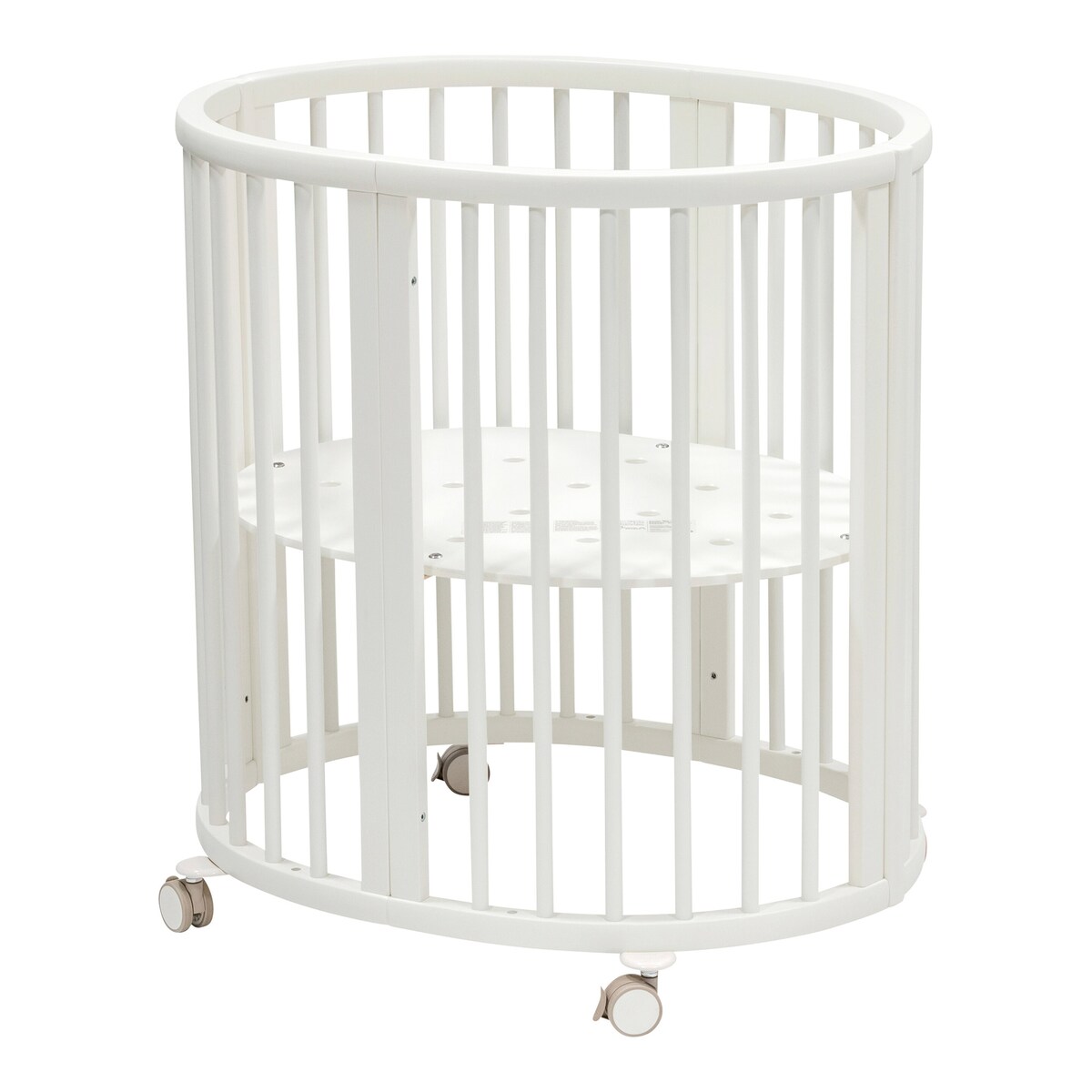 In dem Babybett Sleepi Mini von Stokke fühlen sich die Kleinsten rundum geborgen. Das ovale, aus massivem Buchenholz gefertigte Design bietet dem Nachwuchs vom ersten Lebenstag an einen sicheren Platz zum Entspannen. Alle Kanten des Betts sind abgerundet. Die Stäbe und der perforierte Matratzenboden ermöglichen jederzeit eine optimale Luftzirkulation.