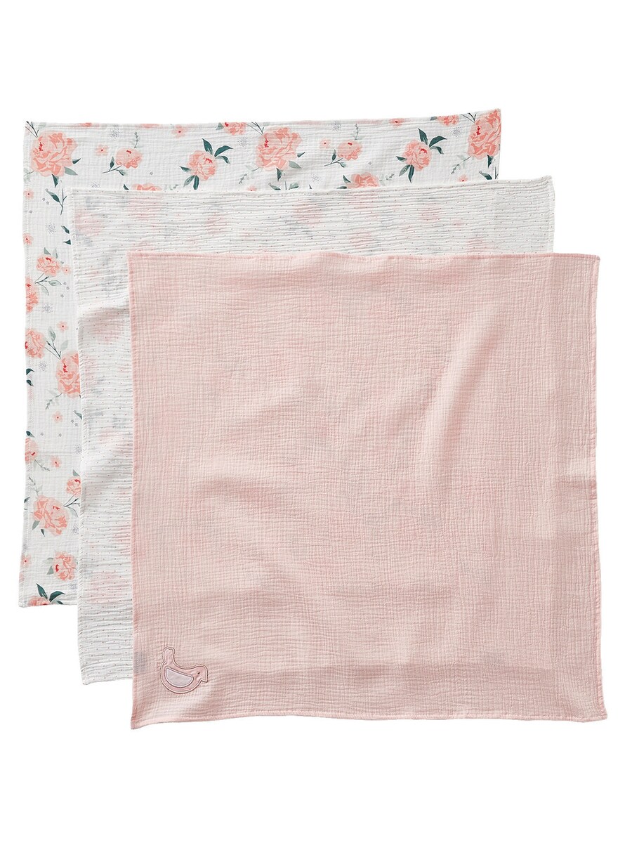 3er-Pack Baby Wickeltücher ROSENTRAUM zartrosa/wollweiß geblümt