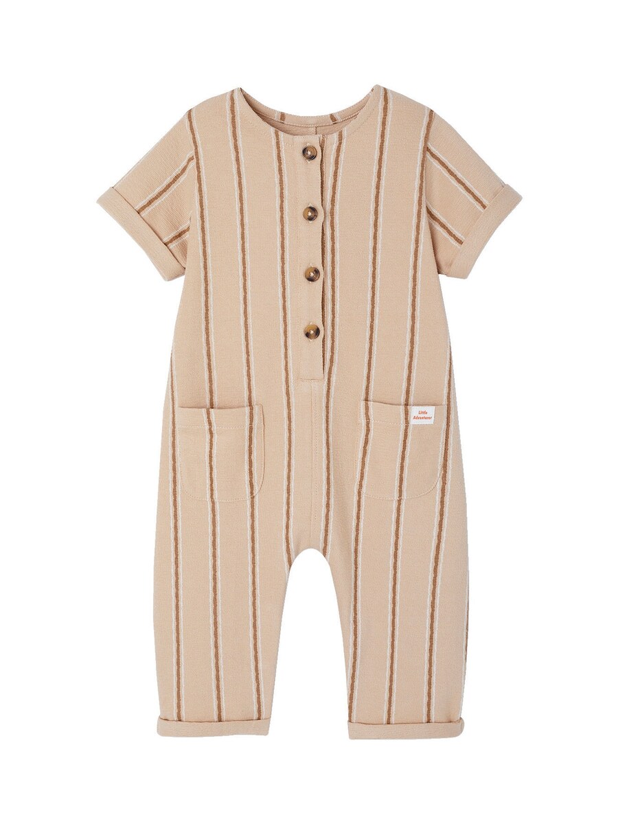 Bio-Kollektion: Baby Overall aus gestreiftem Strick sandfarben