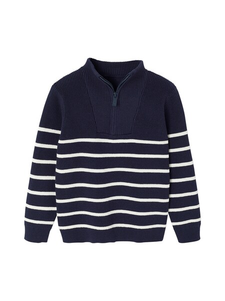Gestreifter Strickpullover mit Reißverschluss-Kragen für Jungen marine