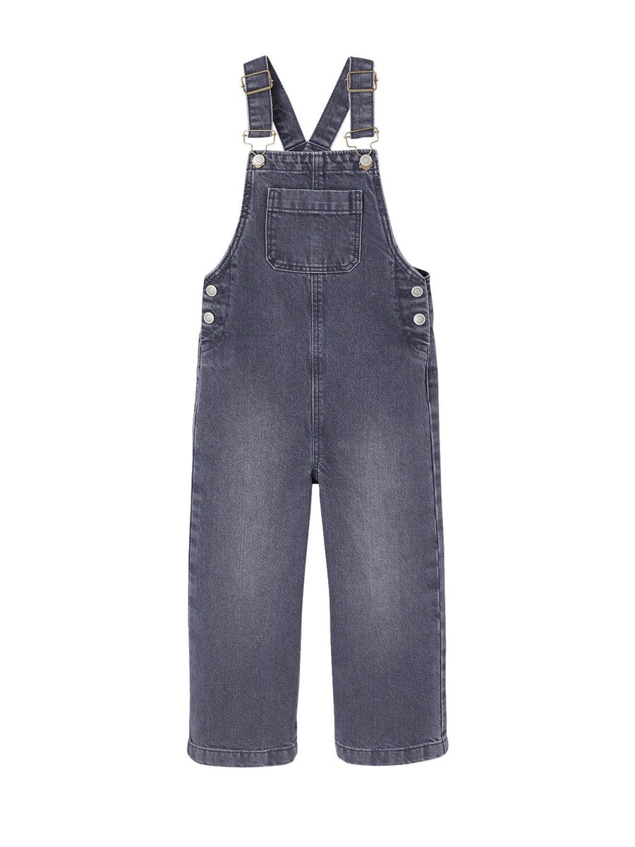 Mädchen Jeans-Latzhose mit weitem Bein schwarz denim