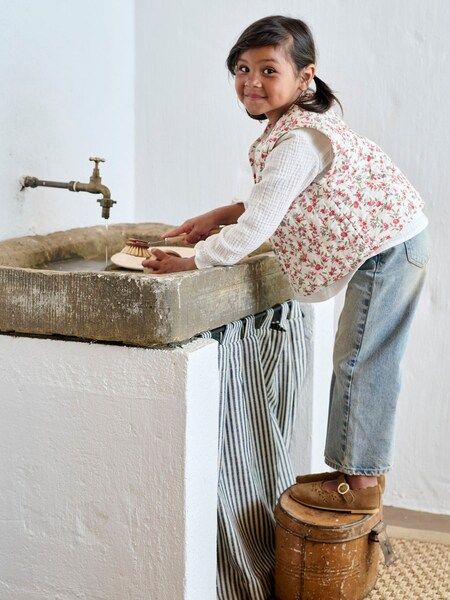 Weite Mädchen Jeans mit Dehnbund, Bundweite verstellbar mittelblau
